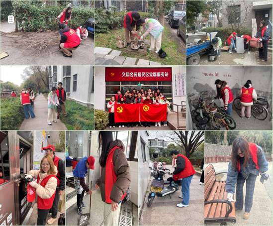 研究生及本科生党员在社区安排下,分组参加了垃圾分类整理指导、绿化带垃圾扫除、楼道自行车有序排放、公共区域小广告清理、公共区域无主物品搬运转移等活动。员工党员们热情高涨,用自己的实际行动践行了雷锋精神、服务了社区居民。文翔名苑居委会党支部顾文娟表示,高校与社区资源共享开展党建联建,不仅能够帮助社区解决实际问题,赋能基层治理,也能为青年员工提供社会实践平台,促进其成长成才。